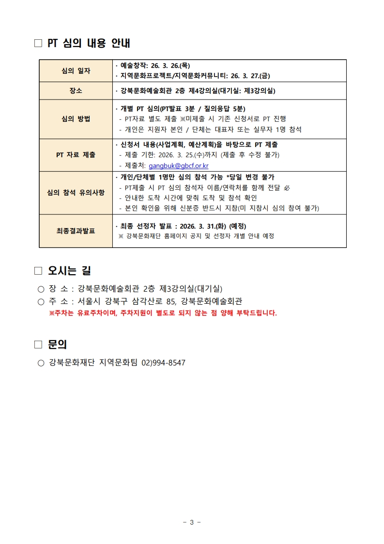 2026 지역문화예술 공모사업 서류심의 결과 안내